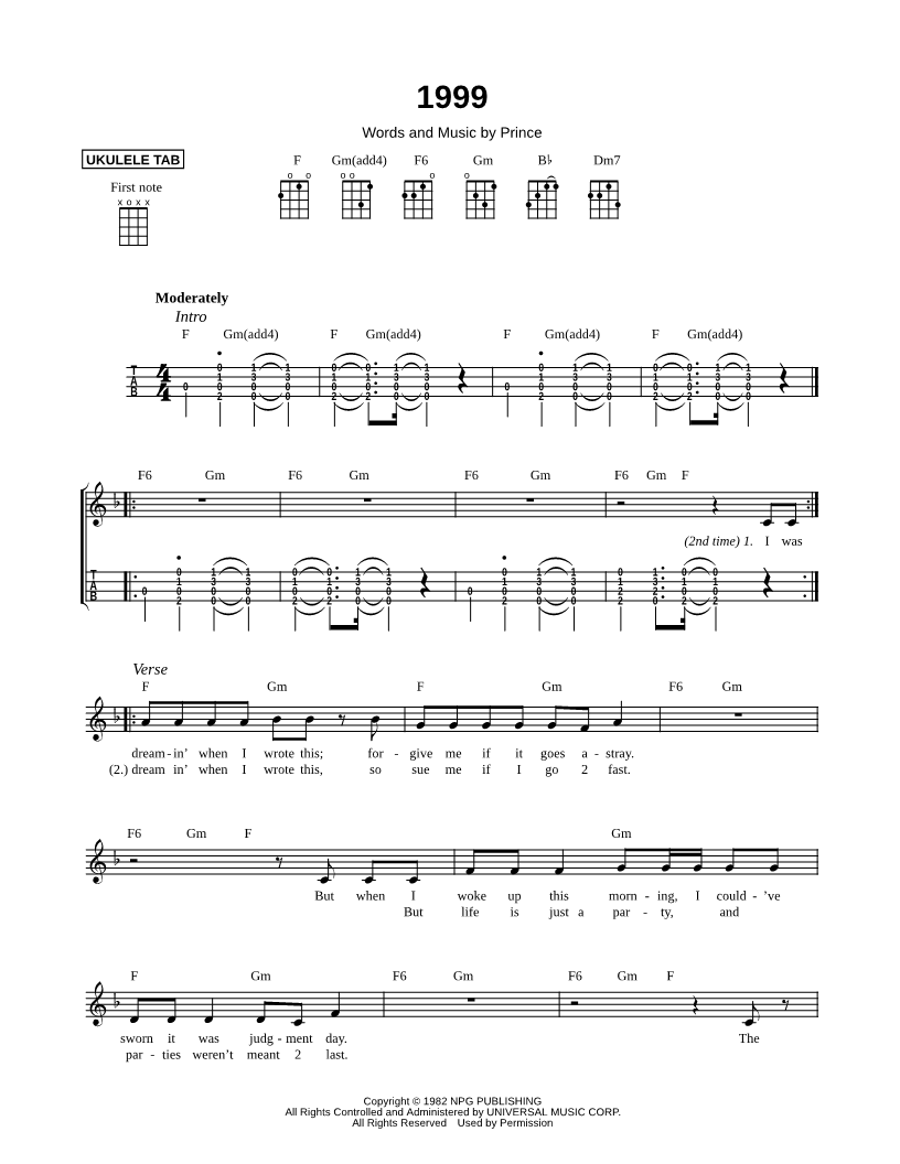 Ukulele/Vocal/Chords Leadsheet |