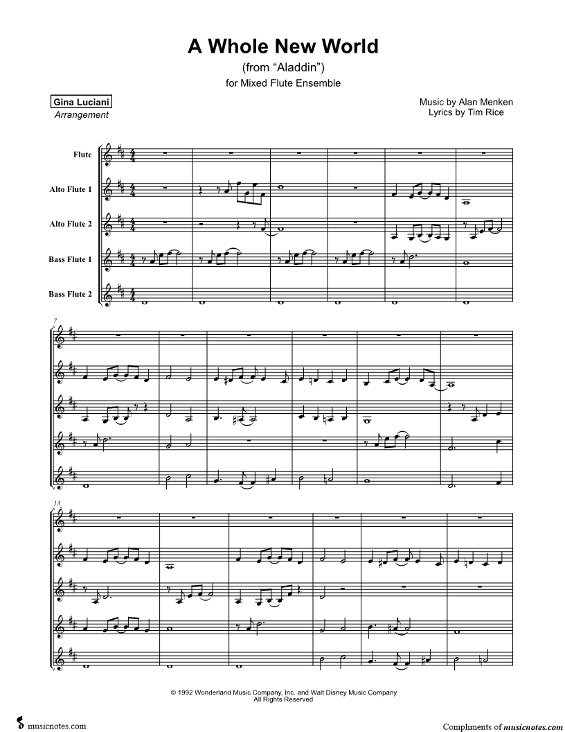 A Whole New World (from Aladdin) - Mixed Flute Ensemble |