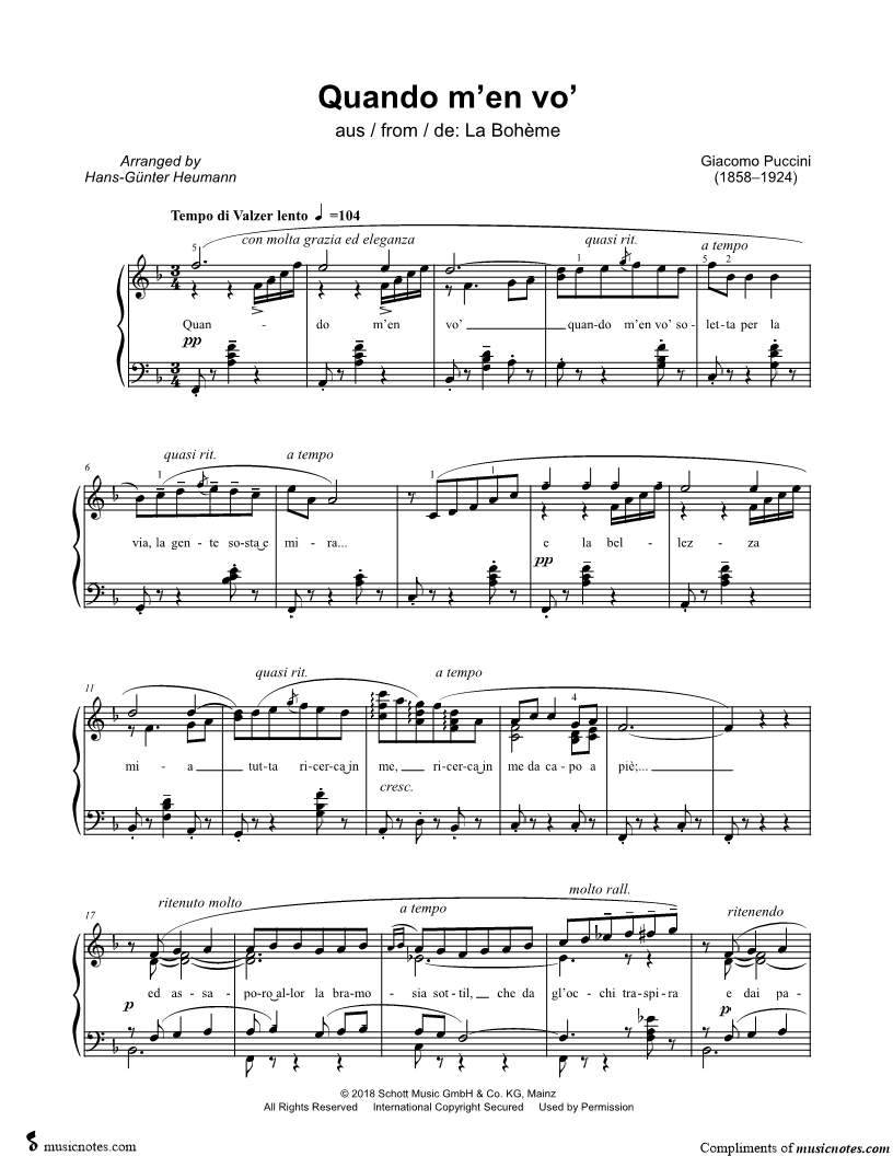 Quando m'en vo' quando m'en vo' soletta per la via, la gente sosta\ue mira... |