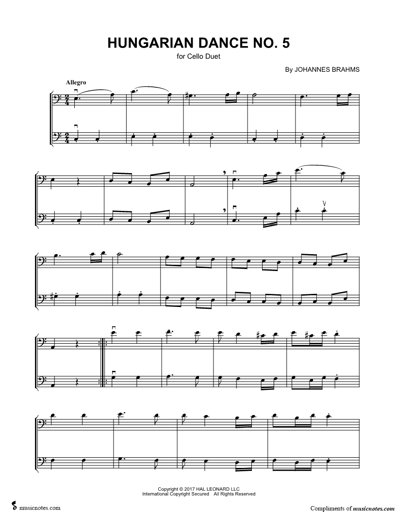 Hungarian Dance No. 5 - Cello Duet |