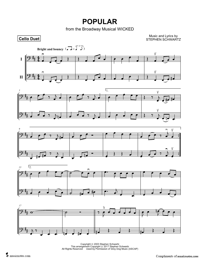 Cello 1, range: F#2-A3 Cello 2, range: D2-F#3 | |
