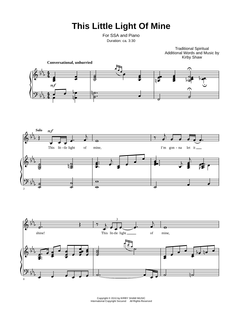 Voice, range: Bb3-G5 or Alto Voice SSA Choir Piano Accompaniment | |
