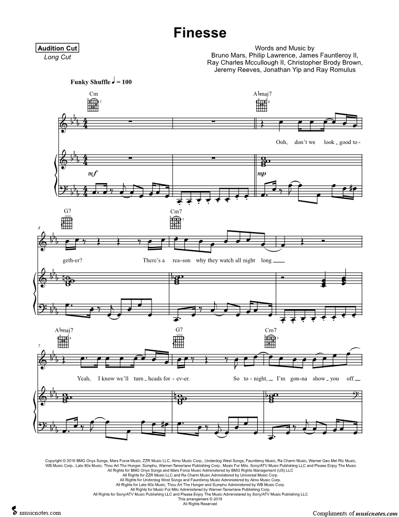 Many of the arrangements on Musicnotes have transpositions available, typically in C Major, as well as 3 sharps and 3 flats. If you do not see your desired key, you can request a transposition by reaching out to Customer Support.