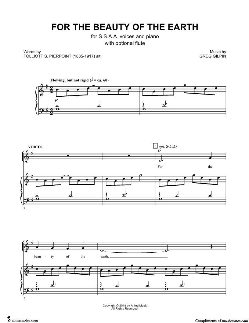 Flute, range: D4-A6 SSAA Choir Piano Accompaniment | |