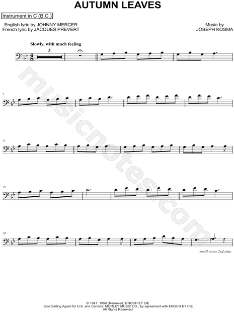 Bass Clef Instrument, range: D3-G4 (Trombone, Bassoon, Baritone Horn or Euphonium, Cello or Double Bass) | |