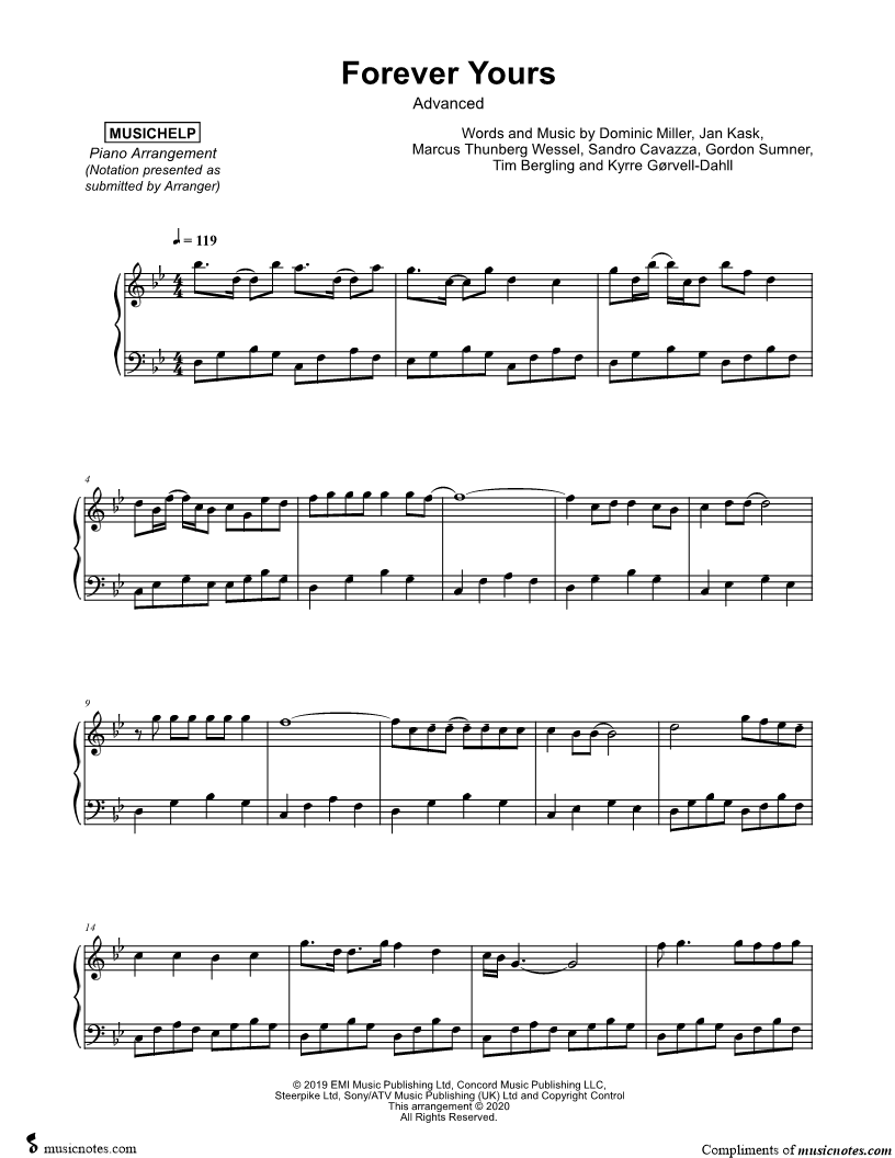 Many of the arrangements on Musicnotes have transpositions available, typically in C Major, as well as 3 sharps and 3 flats. If you do not see your desired key, you can request a transposition by reaching out to Customer Support.