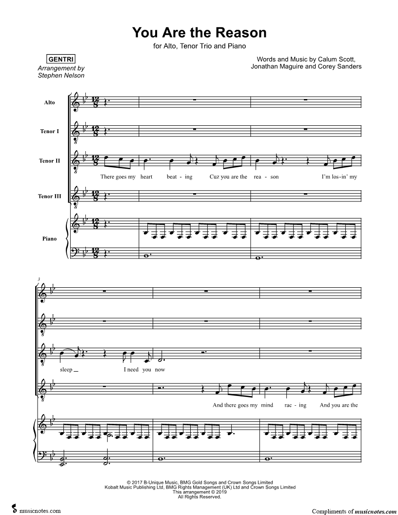 You Are the Reason - Alto, Tenor Trio & Piano |