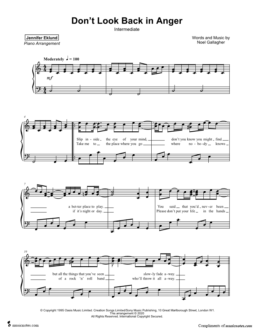 Don't Look Back in Anger [intermediate] |