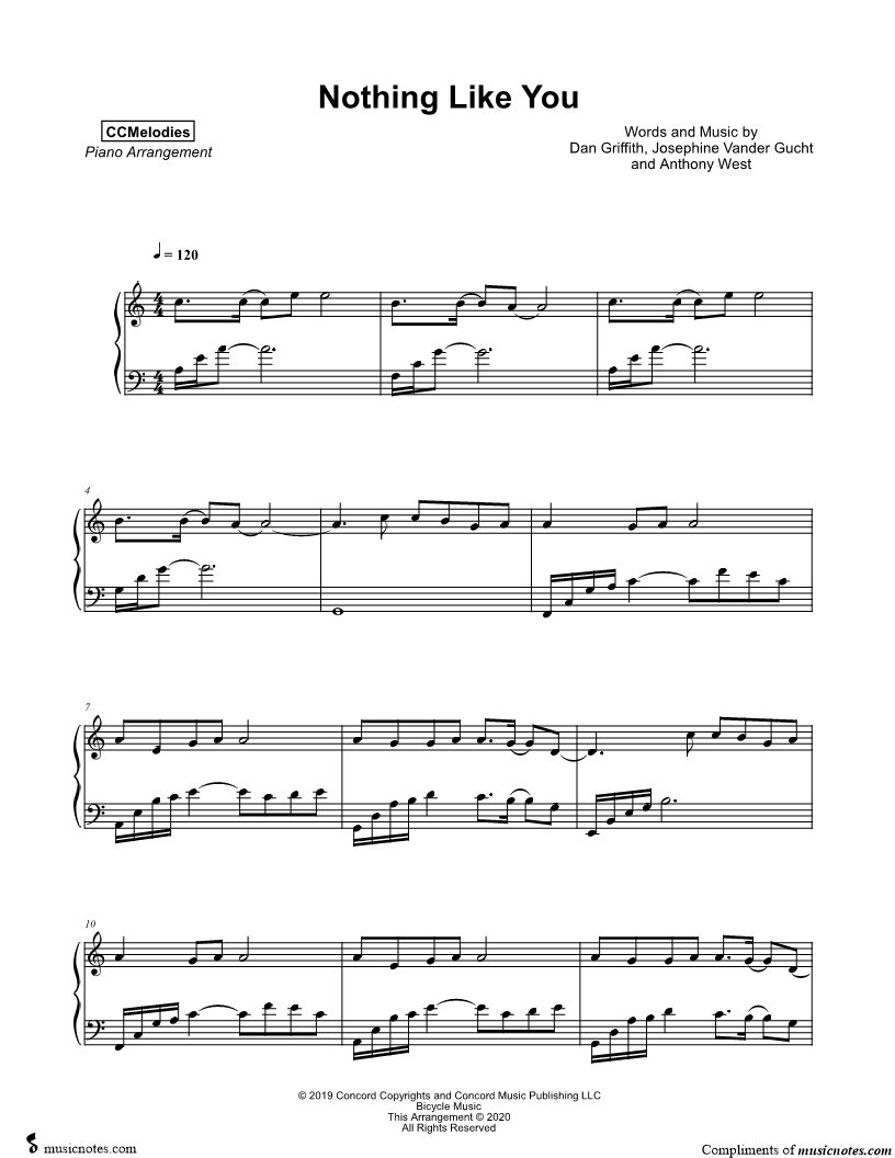 Many of the arrangements on Musicnotes have transpositions available, typically in C Major, as well as 3 sharps and 3 flats. If you do not see your desired key, you can request a transposition by reaching out to Customer Support.