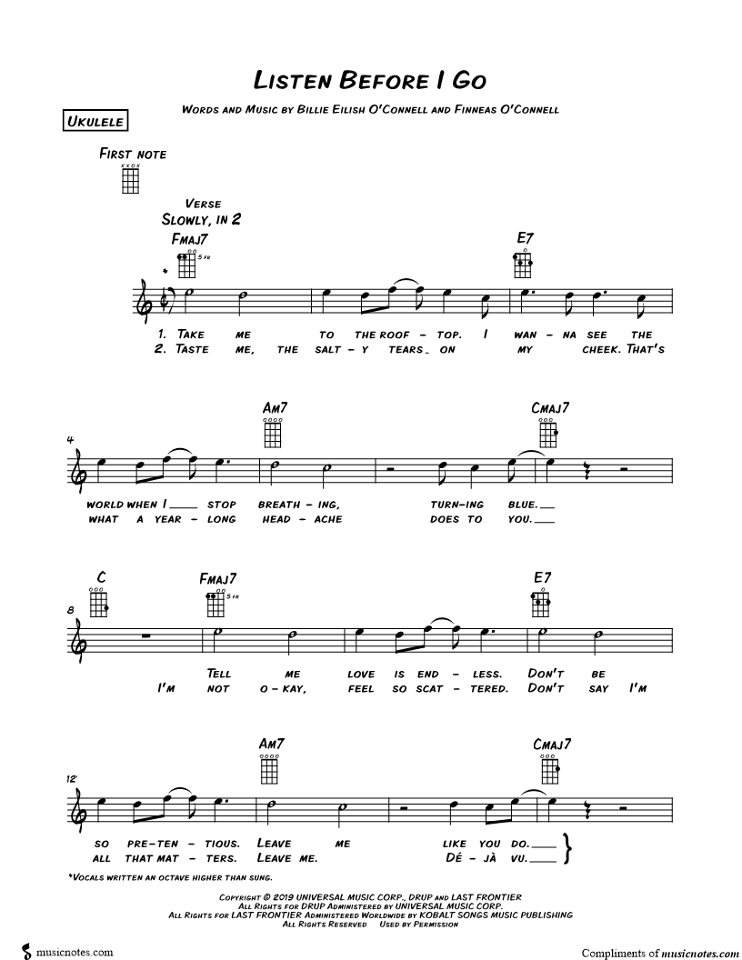 Ukulele/Vocal/Chords Leadsheet |