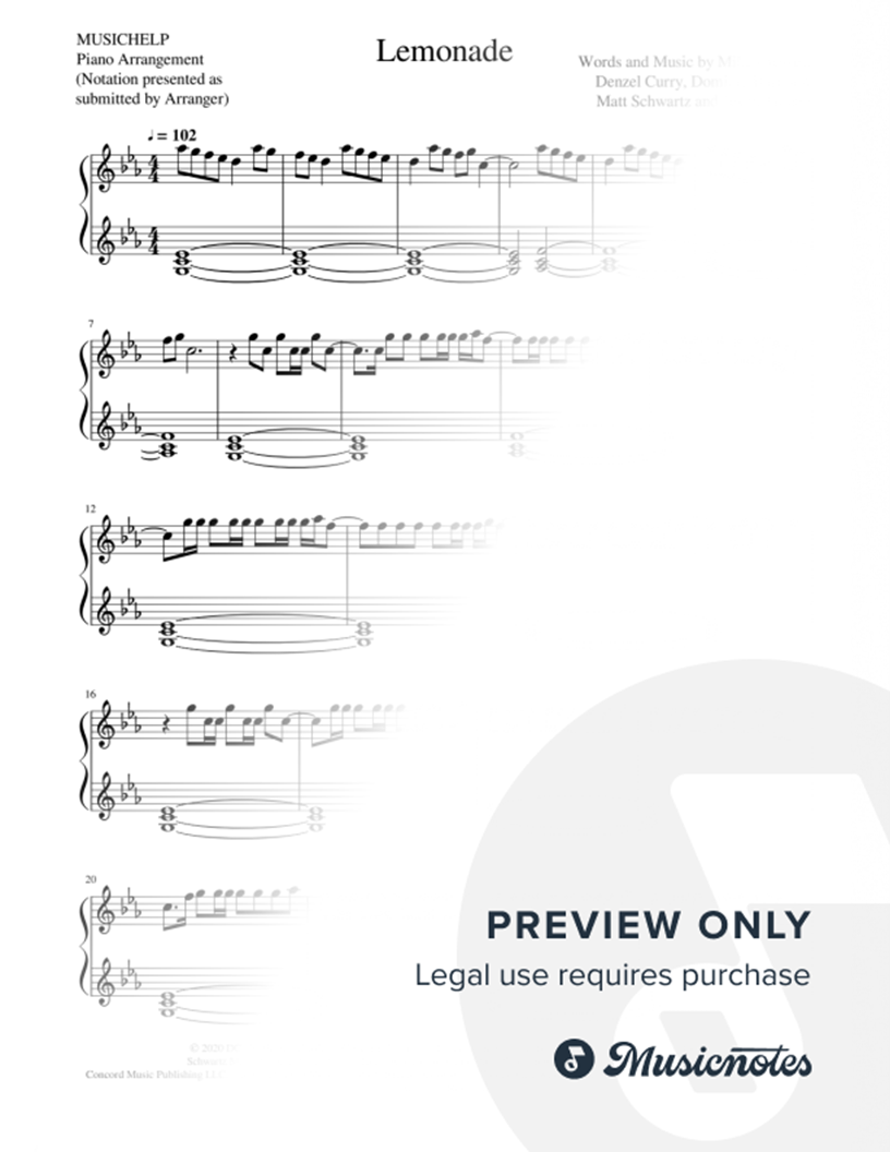 Musicnotes sells a wide variety of digital sheet music products including Singer Pros, Beginner Notes, Choral music, Piano Solos, Lead Sheets, Piano/Vocal/Guitar, Solo and Accompaniment, and fretted instrument tablature.