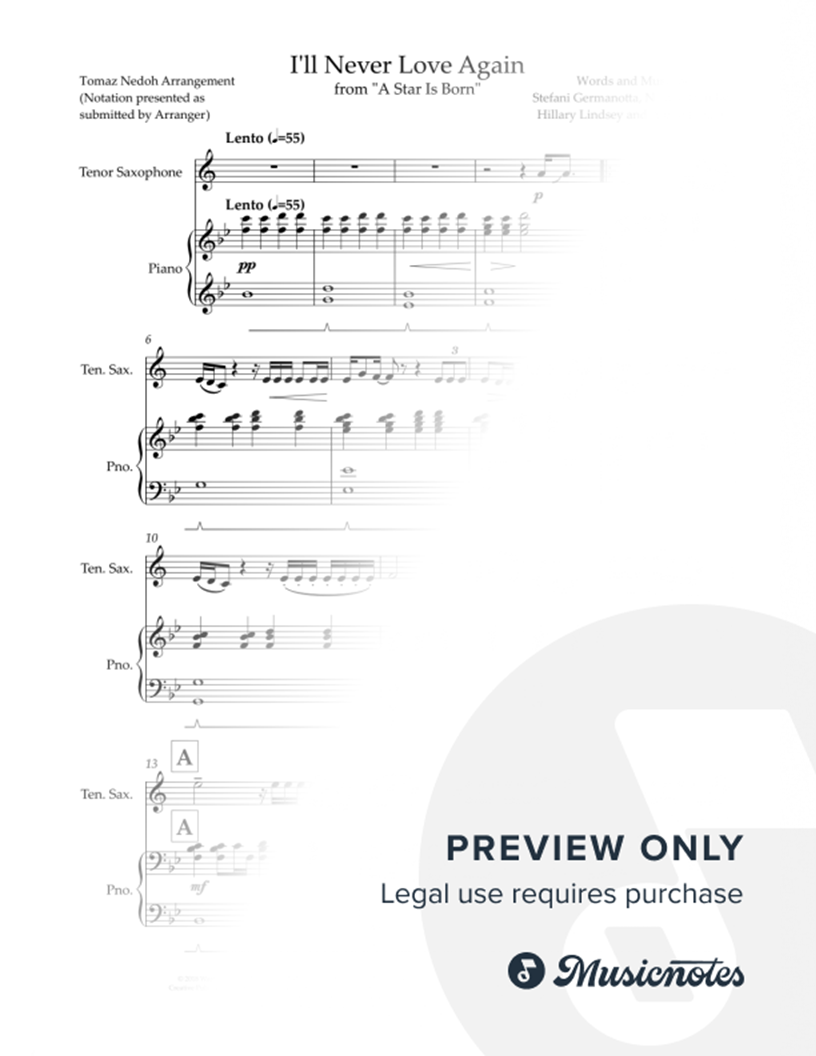 I'll Never Love Again (Extended Version) - Tenor Saxophone & Piano |