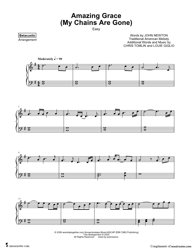 Amazing Grace (My Chains Are Gone) [easy] |