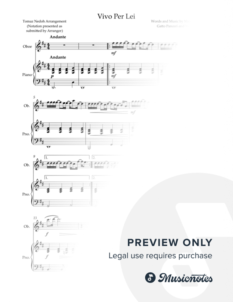 Vivo per Lei - Oboe & Piano |