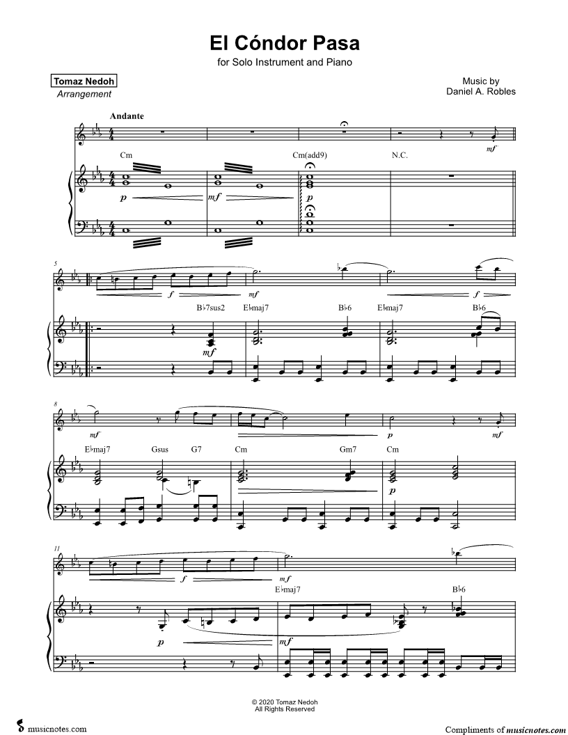 El Cóndor Pasa - Bass Clef Instrument & Piano