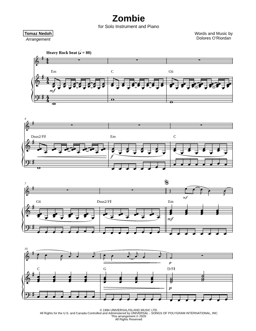Zombie - Piano Accompaniment |