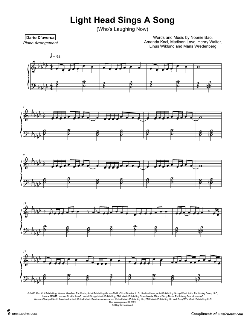 Musicnotes sells a wide variety of digital sheet music products including Singer Pros, Beginner Notes, Choral music, Piano Solos, Lead Sheets, Piano/Vocal/Guitar, Solo and Accompaniment, and fretted instrument tablature.