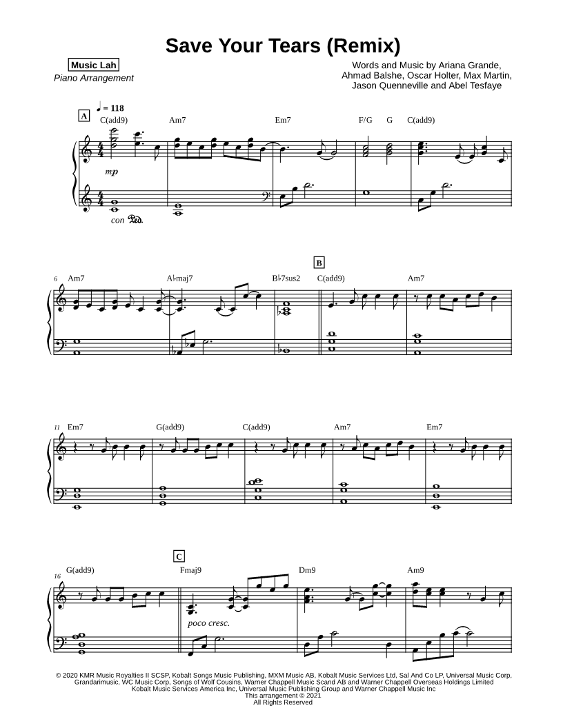 Many of the arrangements on Musicnotes have transpositions available, typically in C Major, as well as 3 sharps and 3 flats. If you do not see your desired key, you can request a transposition by reaching out to Customer Support.