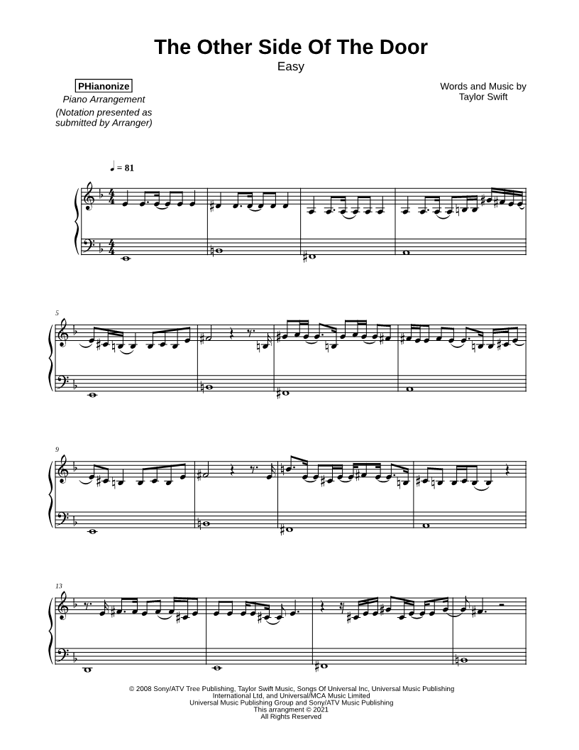 Many of the arrangements on Musicnotes have transpositions available, typically in C Major, as well as 3 sharps and 3 flats. If you do not see your desired key, you can request a transposition by reaching out to Customer Support.