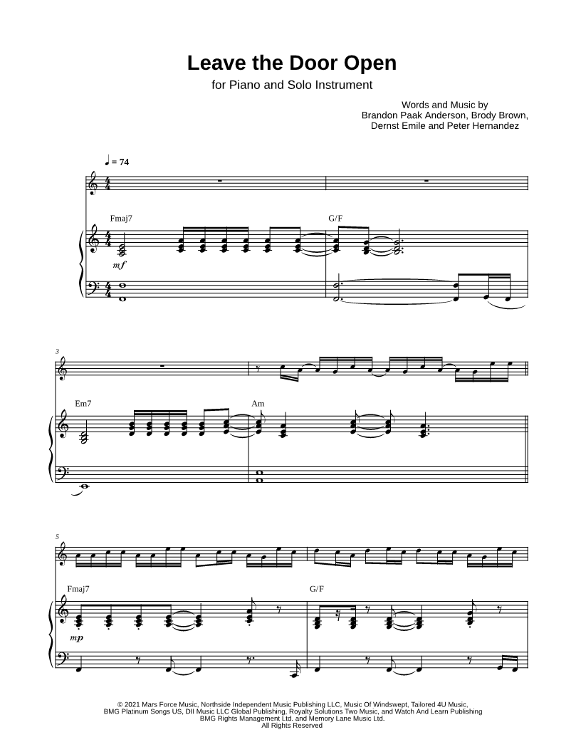 Leave the Door Open - Bass Clef Instrument & Piano