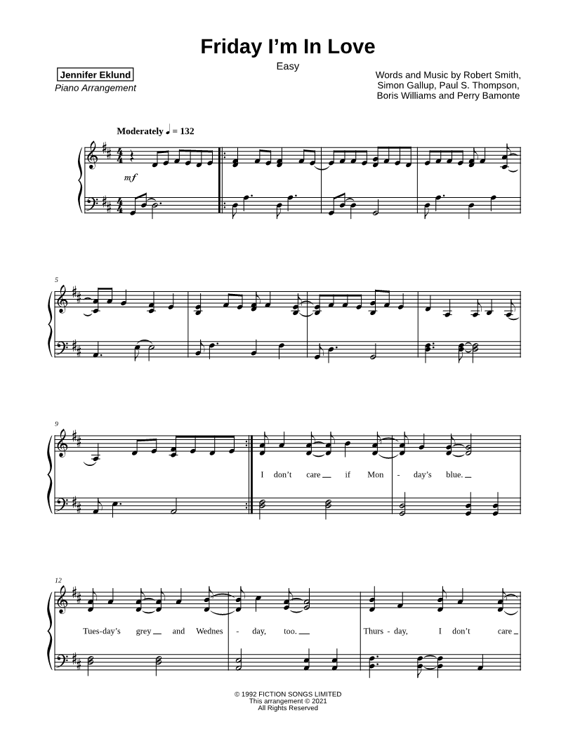 Friday I'm in Love [easy] |