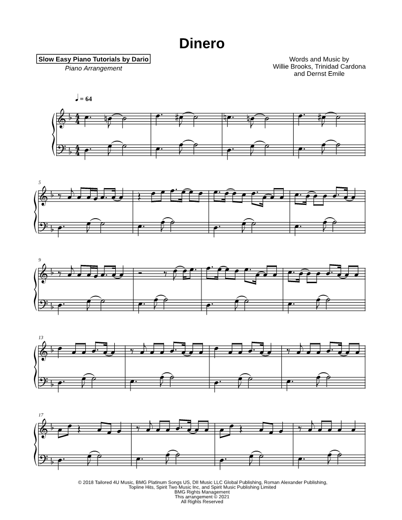 Dinero [Slow Easy Piano Tutorial] |