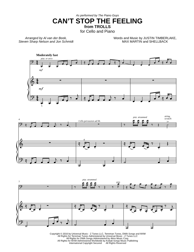 Can't Stop the Feeling! - Cello & Piano [easy] |