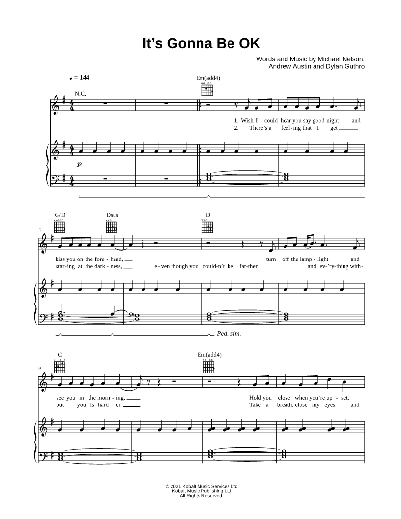 Wish I could hear you say goodnight and kiss you on the forehead, |