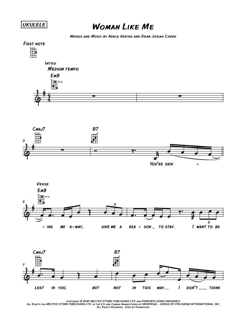Ukulele/Vocal/Chords Leadsheet |