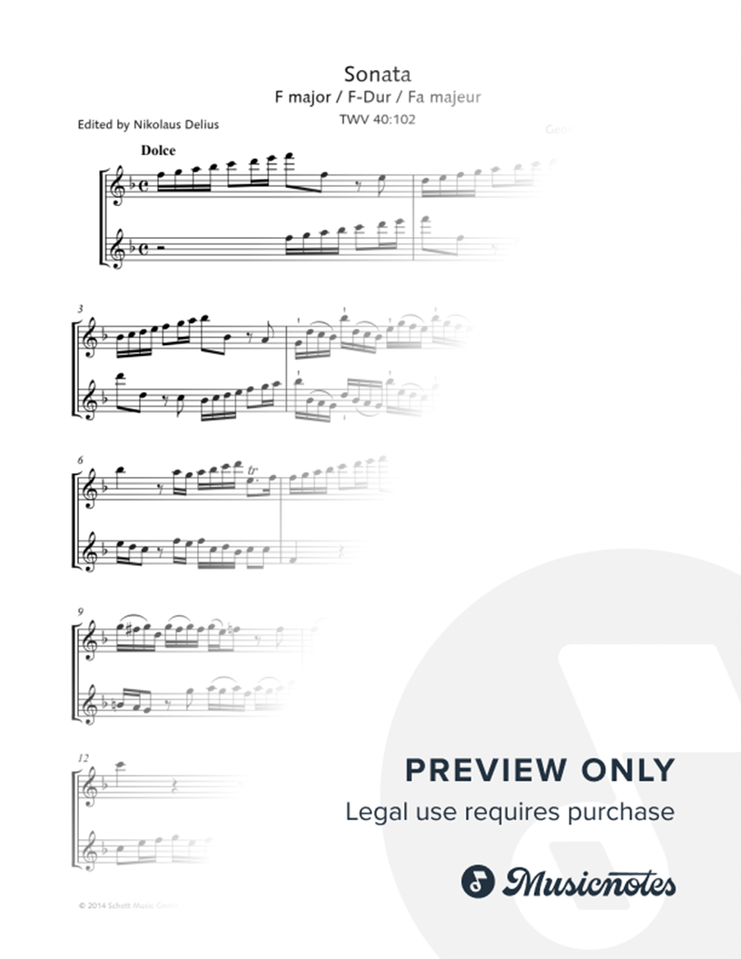 Sonata in F Major, TWV 40:102 - Treble Recorder Duet |