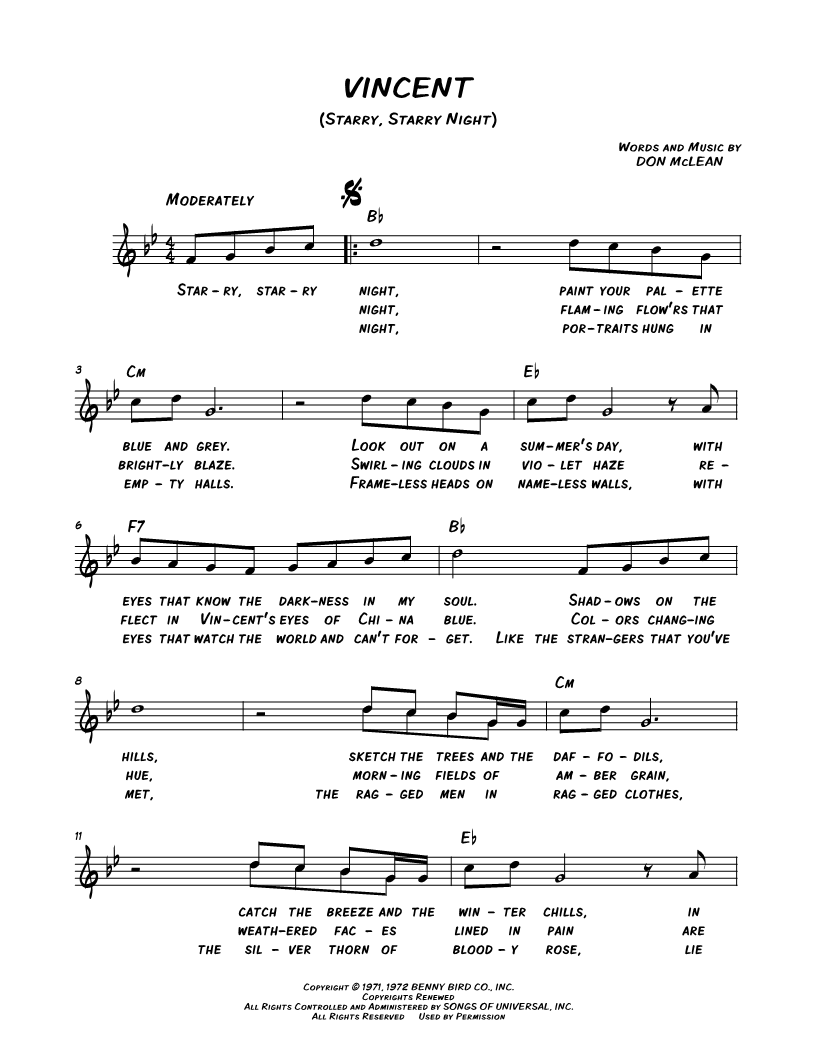 Leadsheets typically only contain the lyrics, chord symbols and melody line of a song and are rarely more than one page in length. Musicians will often use these skeletons to improvise their own arrangements. Leadsheets often do not contain complete lyrics to the song.