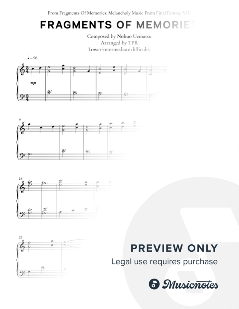 Musicnotes sells a wide variety of digital sheet music products including Singer Pros, Beginner Notes, Choral music, Piano Solos, Lead Sheets, Piano/Vocal/Guitar, Solo and Accompaniment, and fretted instrument tablature.