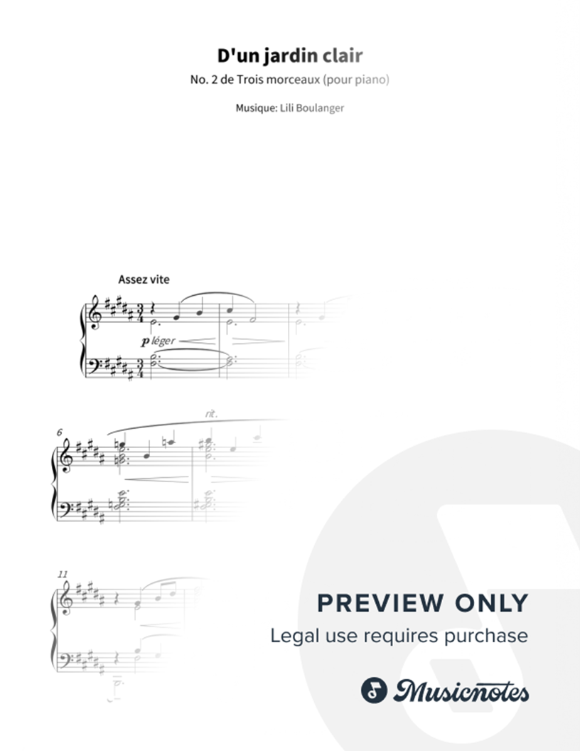 D'un jardin clair - No. 2 De Trois Morceaux |