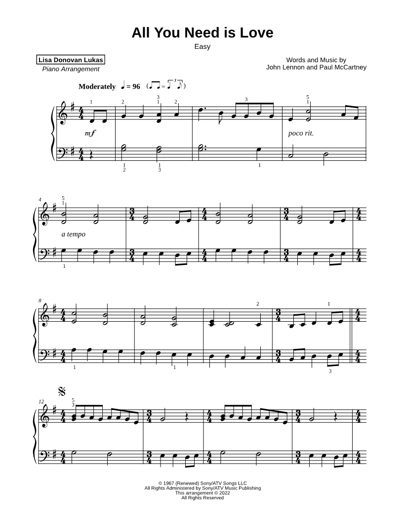 All You Need Is Love [easy] |