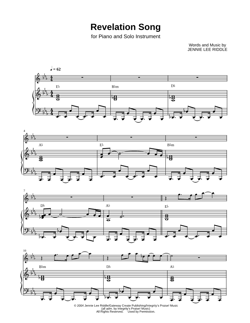 Revelation Song - Bass Clef Instrument & Piano