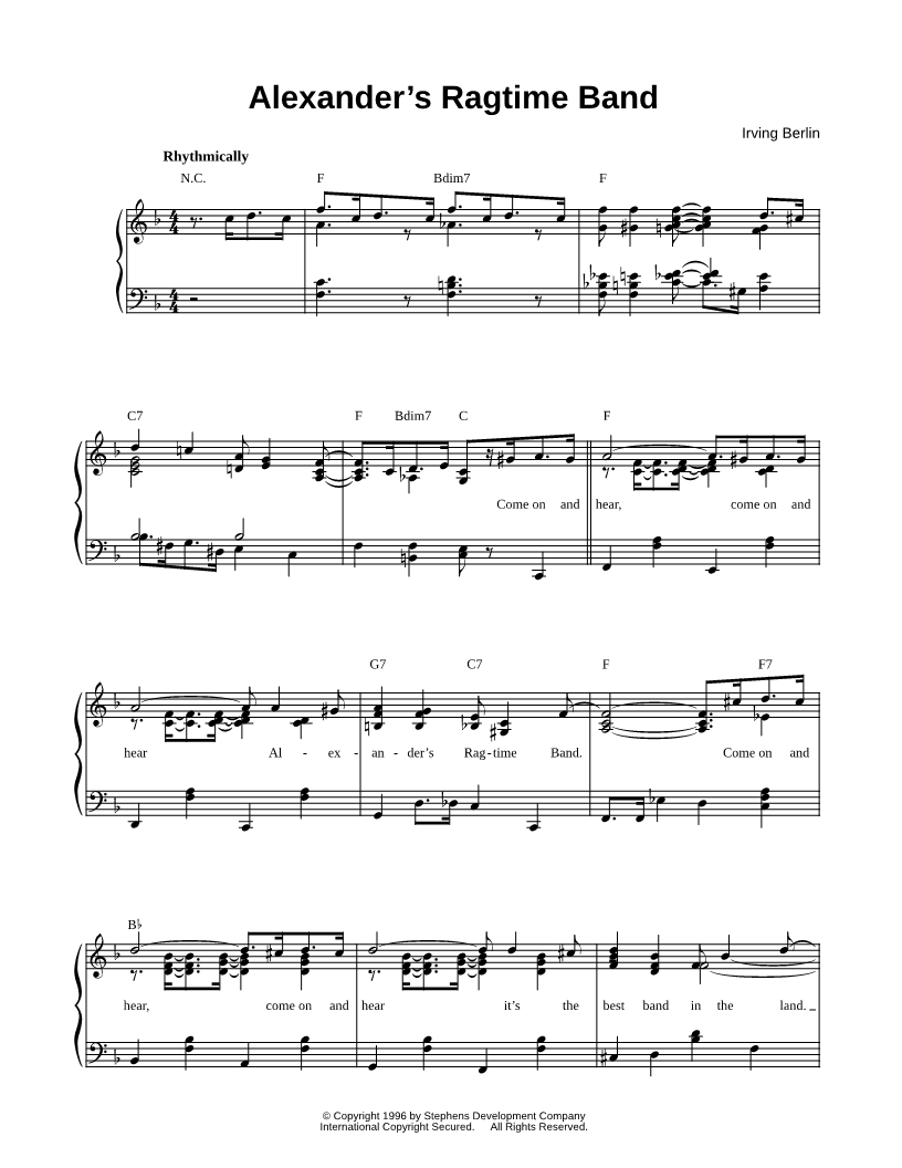 Come on and hear, come on and hear Alexander's Ragtime Band. |