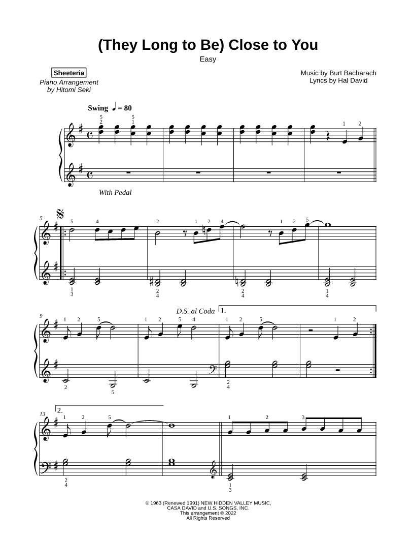 (They Long to Be) Close to You [easy] |