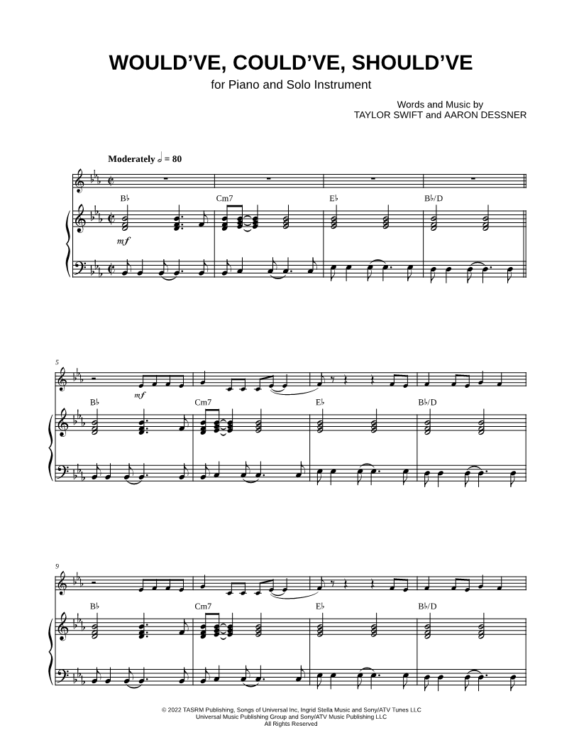 Would've, Could've, Should've - Bass Clef Instrument & Piano