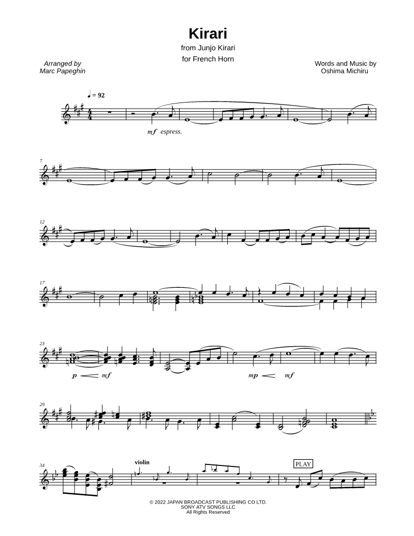 French Horn, range: Bb2-C6 | |