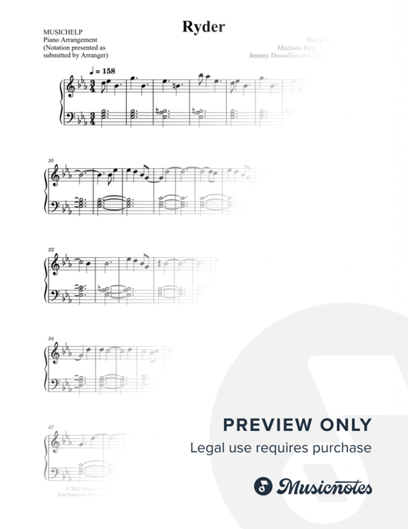 Many of the arrangements on Musicnotes have transpositions available, typically in C Major, as well as 3 sharps and 3 flats. If you do not see your desired key, you can request a transposition by reaching out to Customer Support.