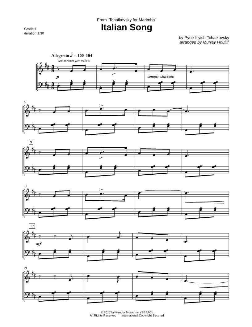 Marimba, range: A2-E5 | |
