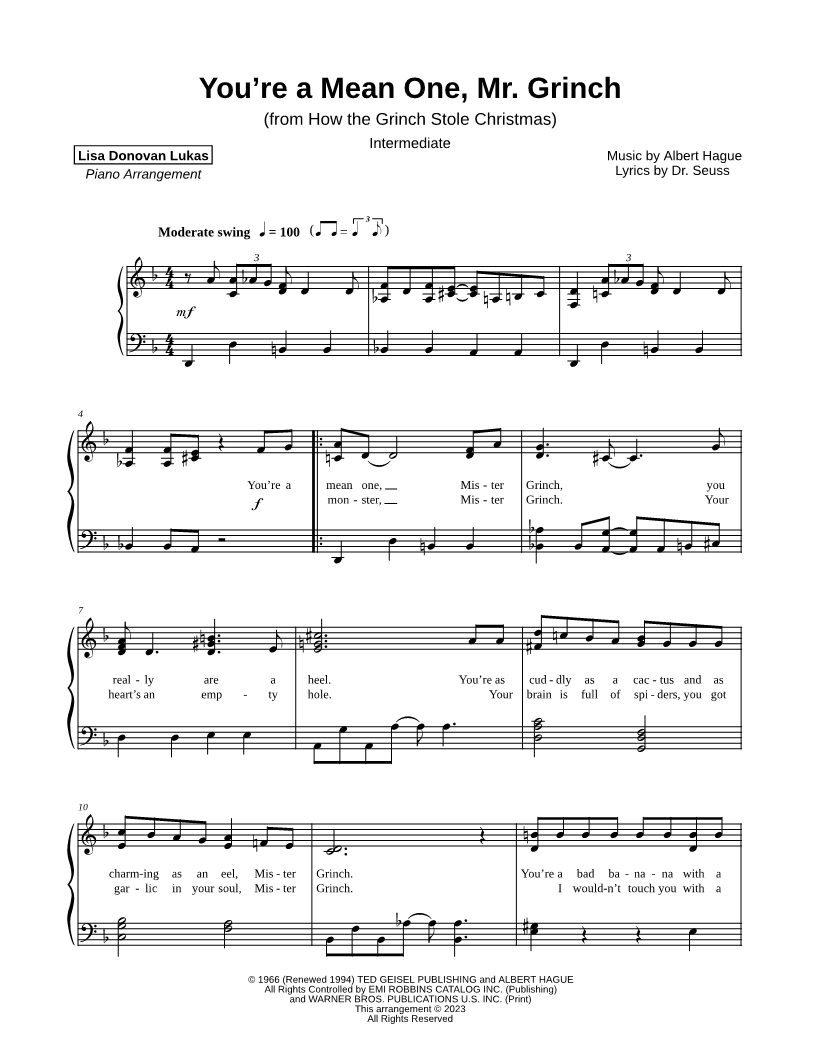 You're a Mean One, Mr. Grinch [intermediate] |