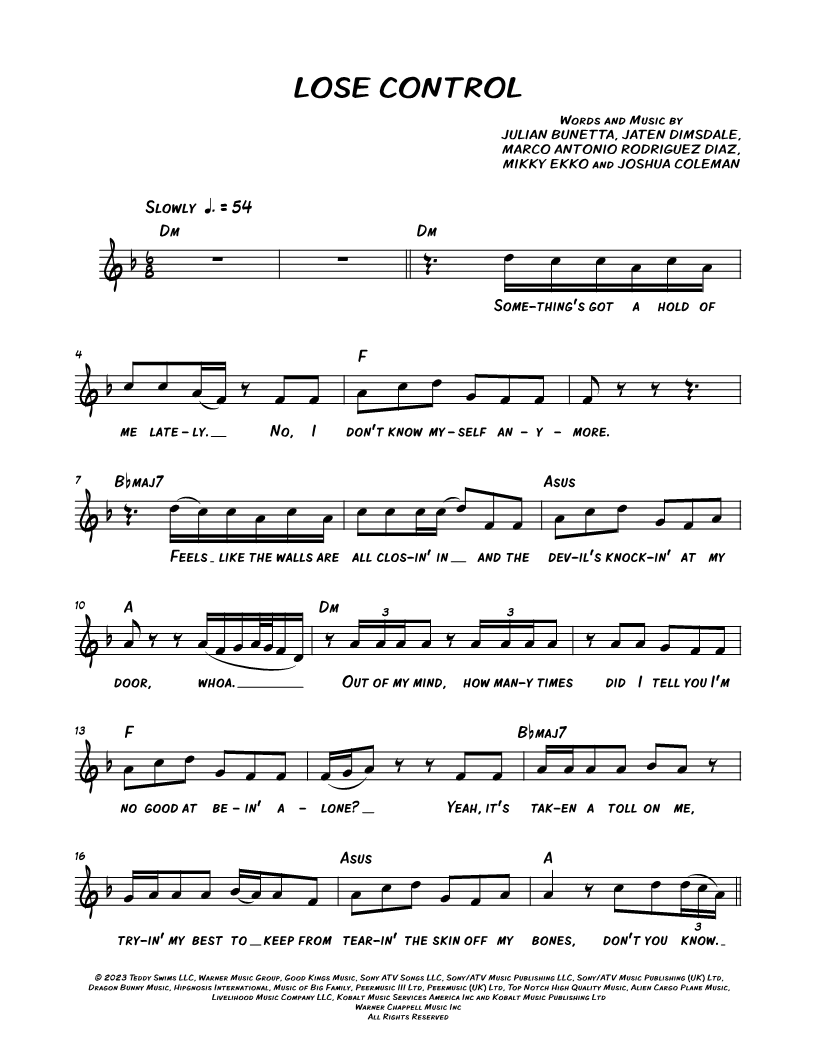 Leadsheets typically only contain the lyrics, chord symbols and melody line of a song and are rarely more than one page in length. Musicians will often use these skeletons to improvise their own arrangements. Leadsheets often do not contain complete lyrics to the song.