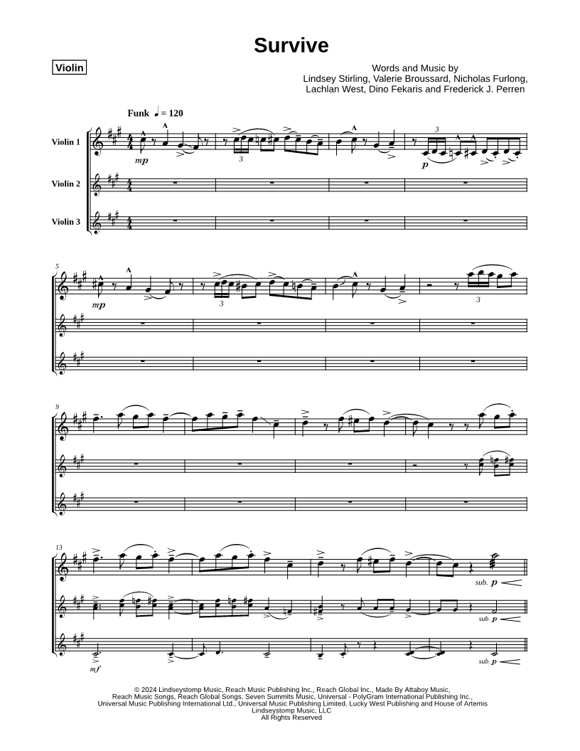 Violin 1, range: C4-F#6 Violin 2, range: F#3-B5 Violin 3, range: B3-D4 | |
