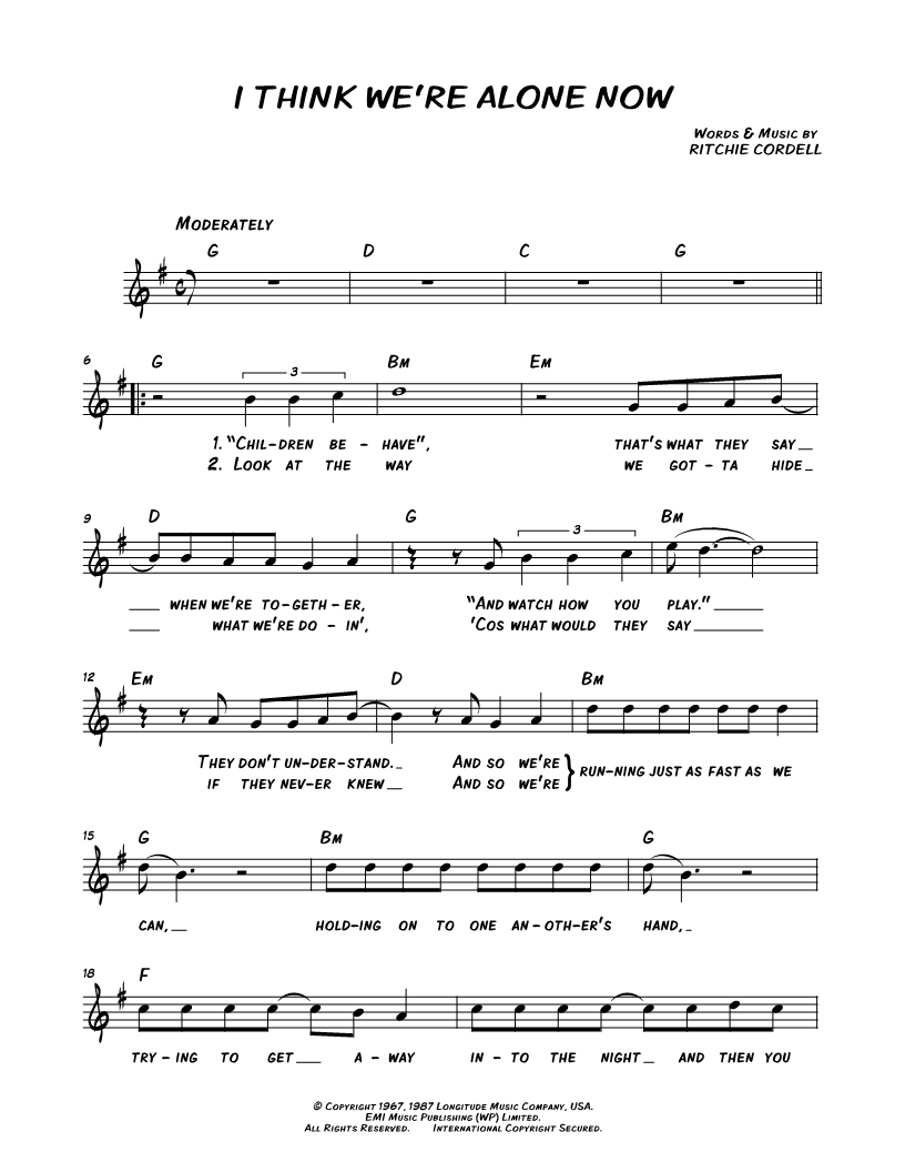 I Think We're Alone Now |