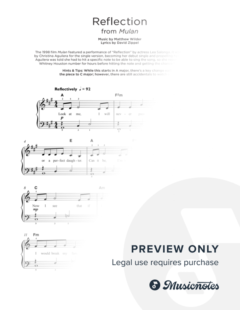 Musicnotes sells a wide variety of digital sheet music products including Singer Pros, Beginner Notes, Choral music, Piano Solos, Lead Sheets, Piano/Vocal/Guitar, Solo and Accompaniment, and fretted instrument tablature.