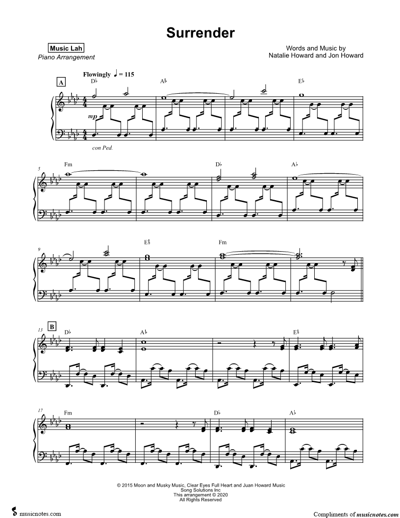 Many of the arrangements on Musicnotes have transpositions available, typically in C Major, as well as 3 sharps and 3 flats. If you do not see your desired key, you can request a transposition by reaching out to Customer Support.
