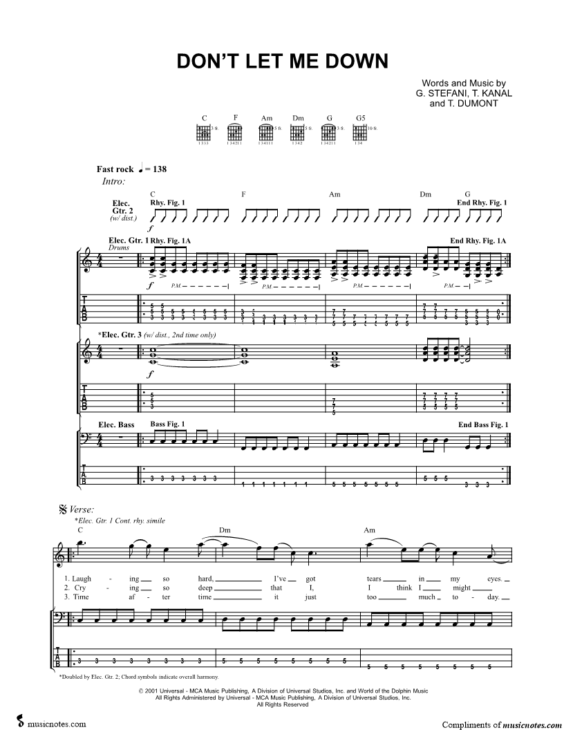 Bass Tab Guitar Tab Guitar/Vocal |