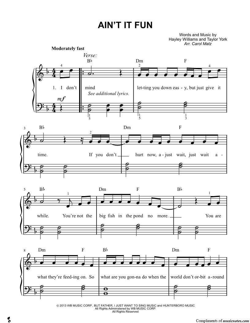 Musicnotes sells a wide variety of digital sheet music products including Singer Pros, Beginner Notes, Choral music, Piano Solos, Lead Sheets, Piano/Vocal/Guitar, Solo and Accompaniment, and fretted instrument tablature.