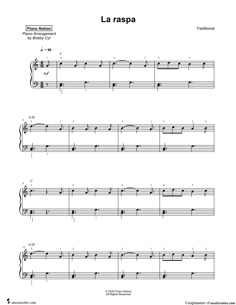 Many of the arrangements on Musicnotes have transpositions available, typically in C Major, as well as 3 sharps and 3 flats. If you do not see your desired key, you can request a transposition by reaching out to Customer Support.
